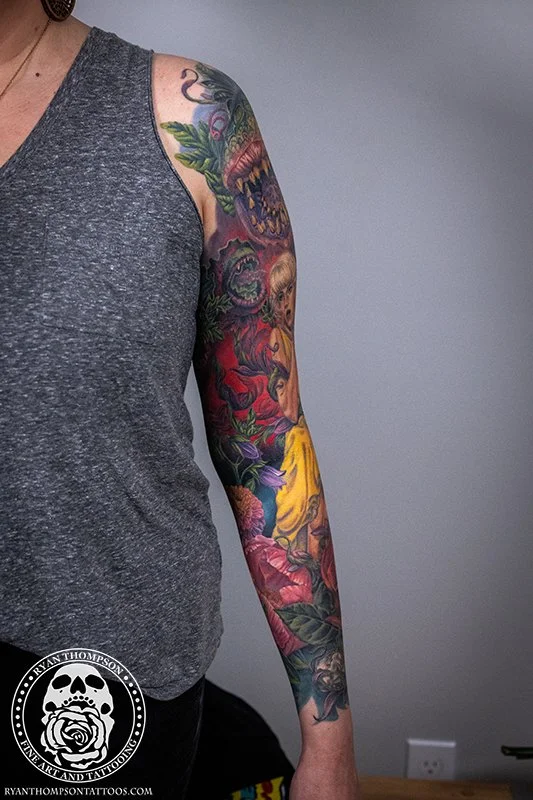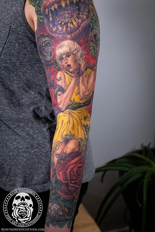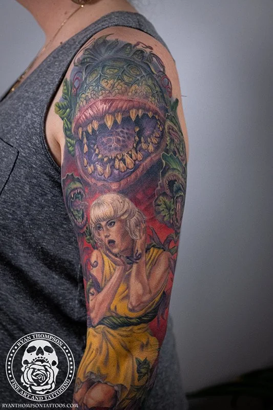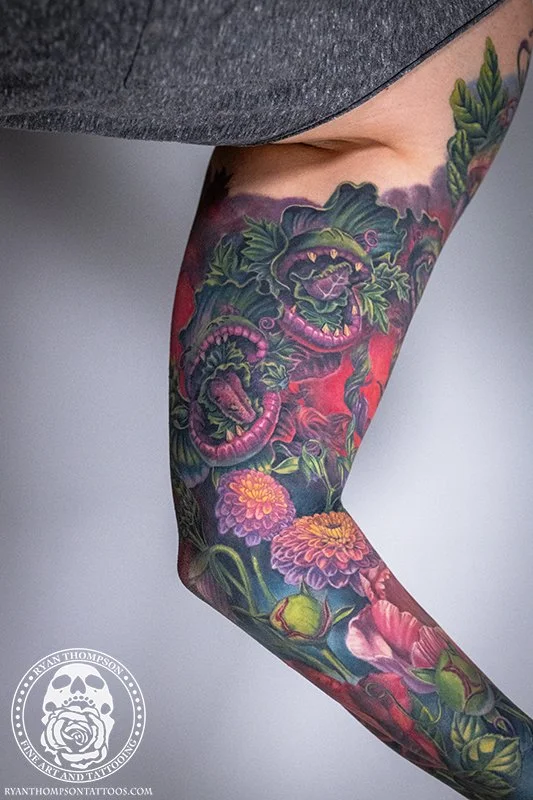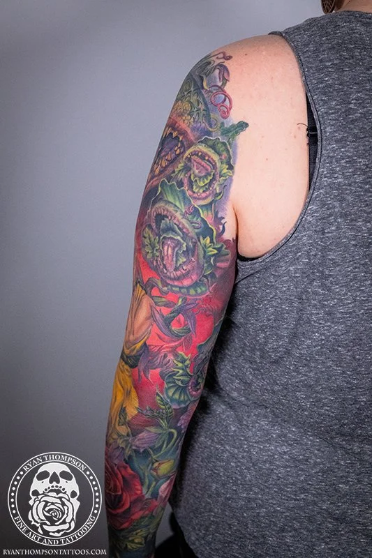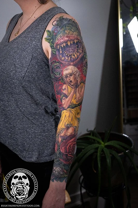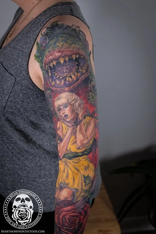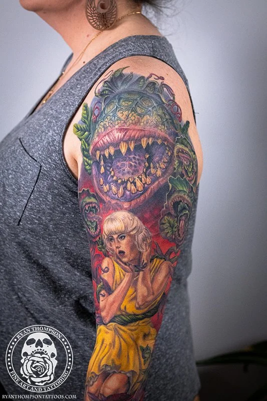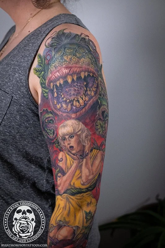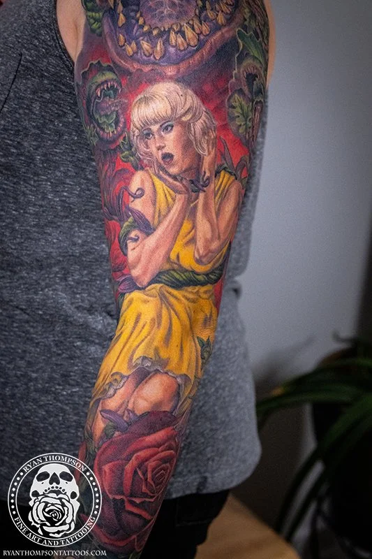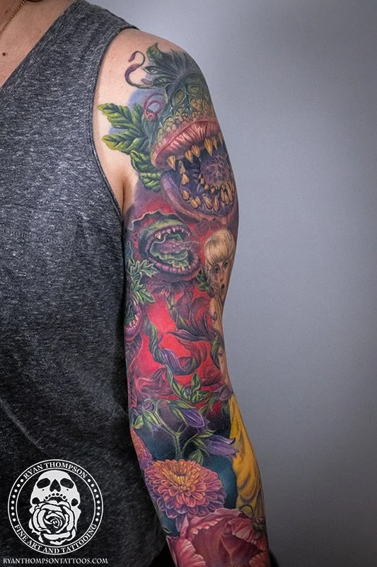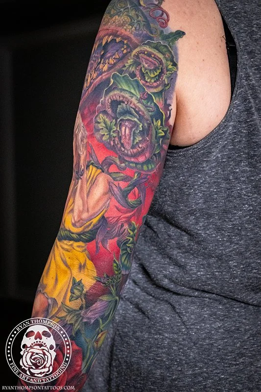 Dorian’s detailed color Lil’ Shop of Horrors sleeve took approximately 75 hours over 26 sessions.