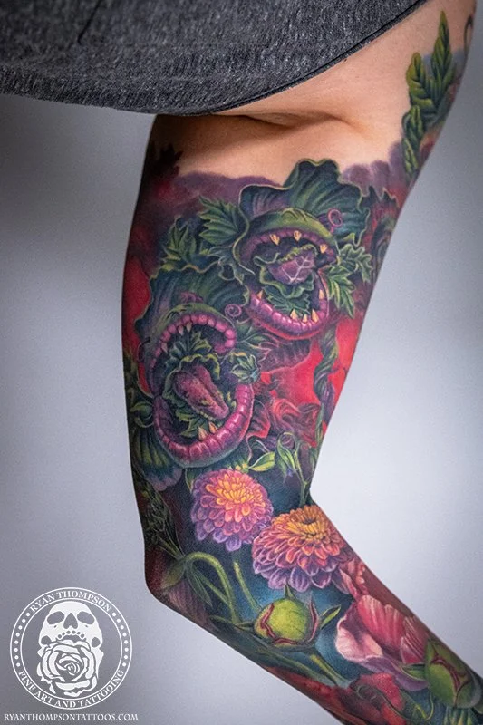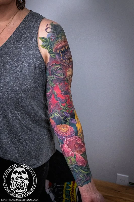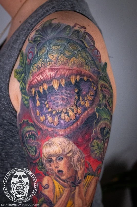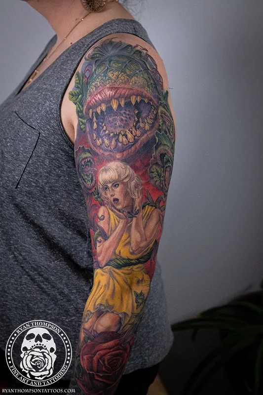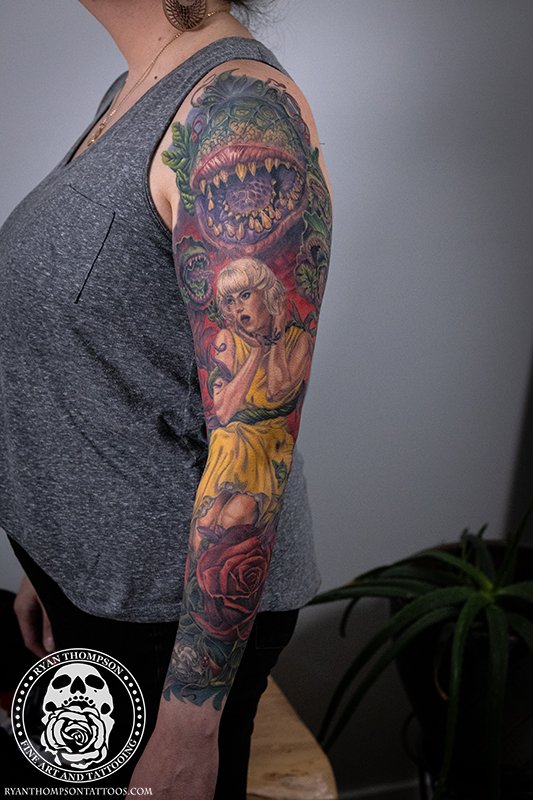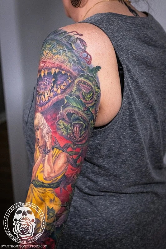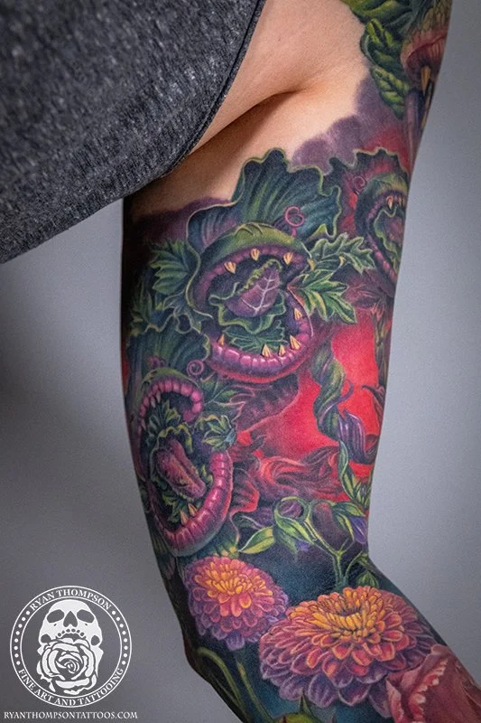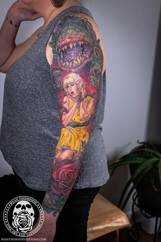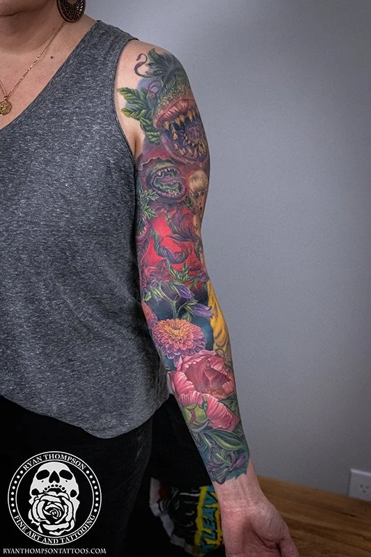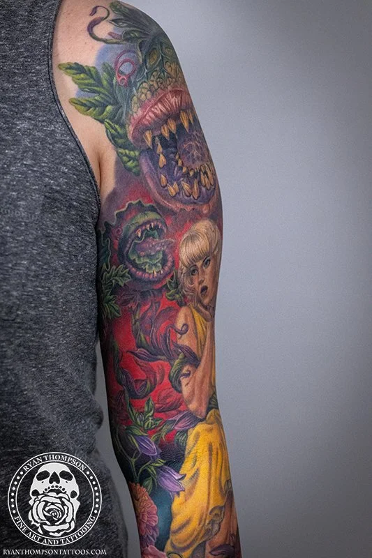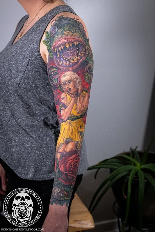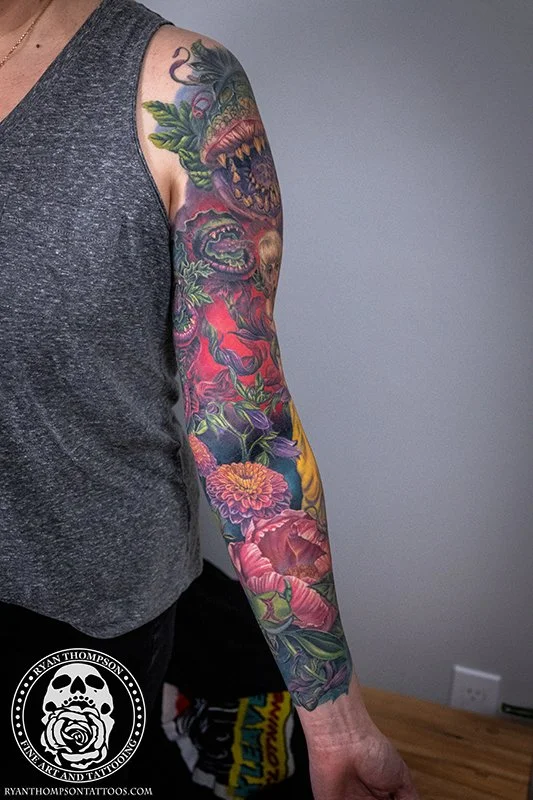 Dorian’s detailed color Lil’ Shop of Horrors sleeve took approximately 75 hours over 26 sessions.