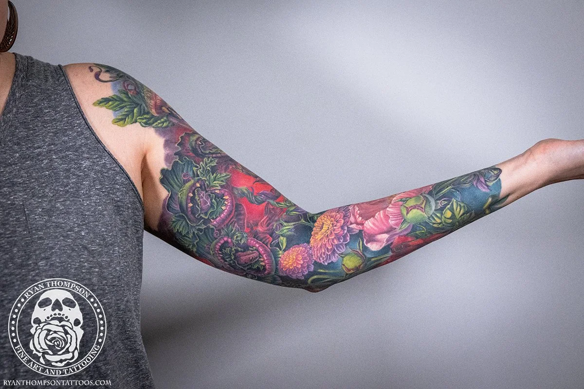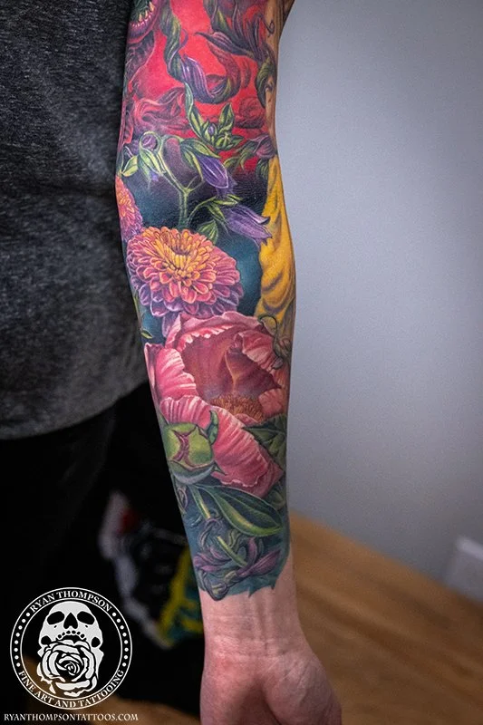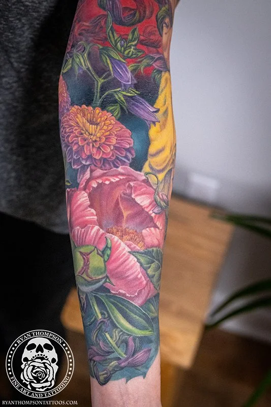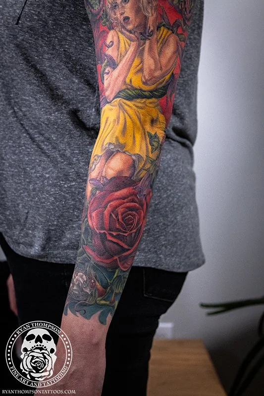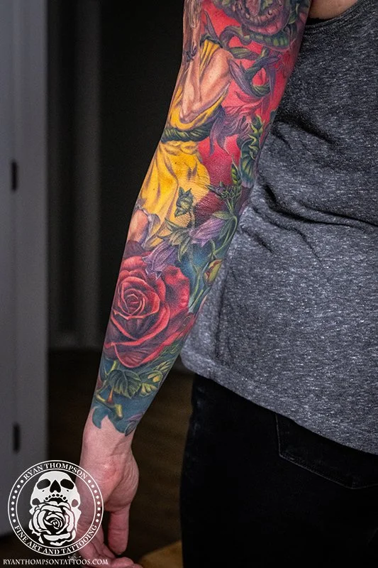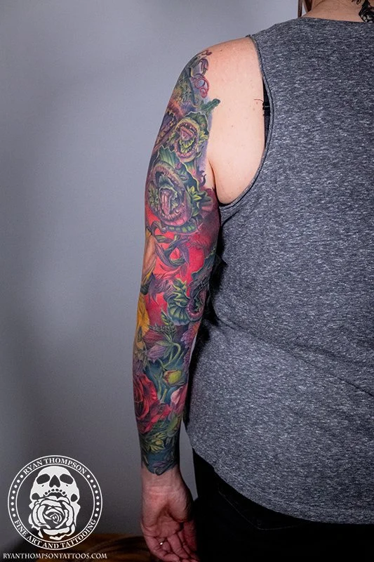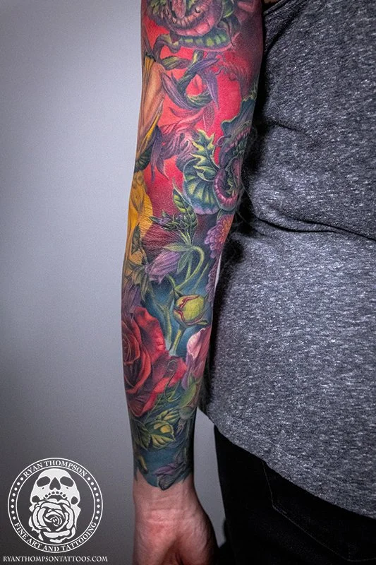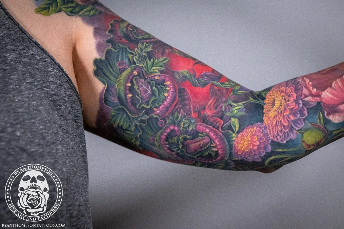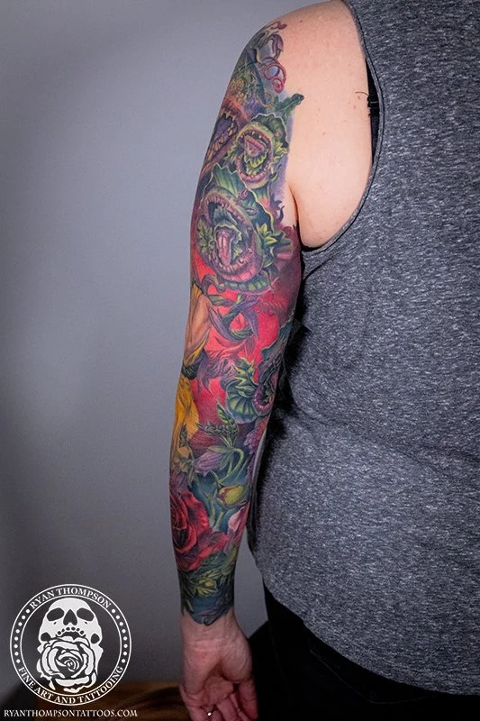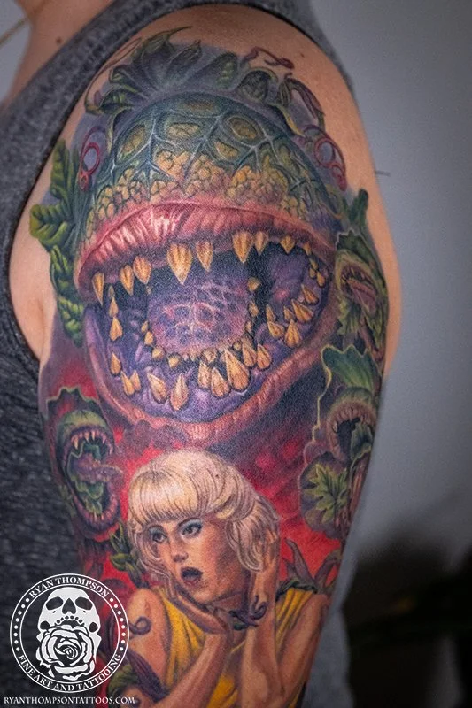Dorian’s detailed color Lil’ Shop of Horrors sleeve took approximately 75 hours over 26 sessions.